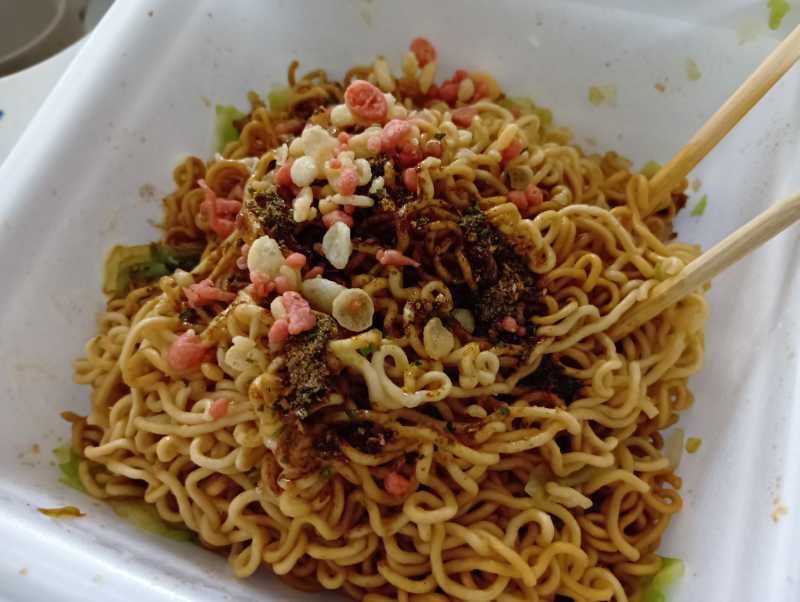 味も、具材が多いせいかいつもの一平ちゃんより薄く感じた。